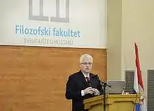 Croatian president Ivo Josipović gives a lecture at the Faculty of Humanities