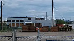 The Fairbanks Exploration Company Machine Shop is a historic machine shop in Fairbanks, Alaska, United States. Located behind the Fairbanks Exploration Company (F.E. Company) administration building at 612 Illinois Street, it is a large single-story steel-frame structure, built in 1927 to serve the company's nearby gold mining operations.[2] Its easternmost section is 16 feet (4.9 m) high, while that on the west is 20 feet (6.1 m) high, in order to accommodate belt-driven equipment and cranes. A tall double door at the center of the east facade is the main entrance. The front of the building housed large belt-driven lathes, while the center had a welding shop, drill presses, and a tool room. A blacksmithy in the back had a sand floor. The building was used by the F.E. Company between 1927 and 1964.[3]