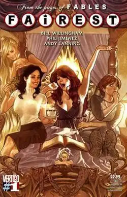 Fairest is an American monthly comic series created by Bill Willingham, published by DC's Vertigo. A spin-off of Fables, Fairest detailed the adventures and stories of Fabletown's female citizens and heroines. Fairest was described by Willingham as a series of miniseries, with each arc telling self-contained stories.[1][2][3]