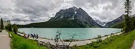 ![]() Fairview Mountain (center) from the shoreline of Lake Louise | |