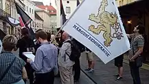 On July 4, 2015, Falanga officially established cooperation with the Czech National Democracy, whose representatives took part in a joint conference on the issues of Central Europe and then in an anti-American protest at the US consulate in Krakow.[18]