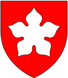 Arms of Sir Falkes de Bréauté: Gules, a cinquefoil argent (As depicted inverted by Matthew Paris (d.1259) in his Chronica Majora (folio 64/68 verso), to mark de Breauté's death)[1]