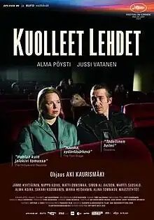 Fallen Leaves (Finnish: Kuolleet lehdet, lit. 'Dead Leaves') is a 2023 Finnish-German romantic comedy-drama film written and directed by Aki Kaurismäki.[6] It is Kaurismäki's 20th full-length film and a continuation of his Proletariat series, which was originally planned as a trilogy and already includes Shadows in Paradise (1986), Ariel (1988), and The Match Factory Girl (1990).[7][8] Alma Pöysti and Jussi Vatanen star in the main roles. The film is produced by Sputnik and Bufo.[6]