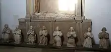 Sir George Bruce monument, Culross Abbey, showing his children praying below the tomb