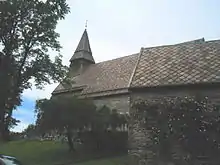 Fana Church (Norwegian: Fana Kirke) is a parish church of the Church of Norway in Bergen Municipality in Vestland county, Norway. It is located in Fanahammeren, a village in the borough of Fana in the city of Bergen. It is one of the two churches for the Fana parish which is part of the Fana prosti (deanery) in the Diocese of Bjørgvin. The gray, stone church was built in a long church design in the year 1153 using plans drawn up by an unknown architect. The church seats about 450 people.[1][2][3] The existing stone building celebrated its 850-year anniversary in 2003, but the church building history is long and complicated. Historians assert that the church has been rebuilt and enlarged several times.[4]