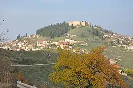 Fanari is mentioned for the first time in 1304, when it was briefly occupied by the forces of the regent of Epirus, Anna Palaiologina Kantakouzene.[3] It then came under the control of the autonomous Thessalian magnate Stephen Gabrielopoulos, and on his death in 1333 it passed to the ruler of Epirus, John II Orsini, who fortified it.[3] The castle, a plain structure on a circular plateau some 100 m across, is well preserved to this day. It features five square towers, and a strong gate-tower on its western side, while a cistern and remains of a barracks survive in the interior.[3] The archontes (local elders) of Fanari are mentioned in several documents: in 1342 Michael Gabrielopoulos assured them that no Albanians would be settled in their area, and confirmed their possession of the monasteries of Lykousada and Porta Panagia, while in 1382 the archontes are mentioned in a local church synod.[3] In 1444, when the Despot of the Morea and future Byzantine emperor, Constantine XI Palaiologos, briefly expanded his control into Central Greece, he installed a governor of his own in Fanari.[3]