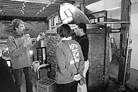Guided tour with the brewmaster, April 2010. The brick-insulated mash tun can be seen in the background