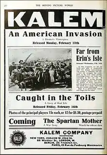 ![]() Advertising published in The Moving Picture World, Vol 11, p 401 | |