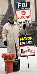 - ↑ Erickson, Mark. "From Church Pew to Daley Plaza, the Tragic Descent of Chicago's Troubled "Sign Guy"". Eat Portland. Archived from the original on 21 March 2015.