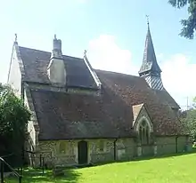 The parish of Farlington has two churches - the historic parish church of St. Andrew and the Church of the Resurrection. St. Andrew's is situated at the eastern end of the district on the main Havant Road. Adjacent to the church on the west side once stood Farlington House which was demolished in the 1960s to make way for a new housing estate that extended Old Rectory Road. The first recorded mention of St. Andrew's church was in 1200 in a dispute between two nobles concerning the presentation to the church of St Andrew at Farlington.[15] A slightly later document from Southwick Priory in 1215 also dedicates the church to St. Andrew.[15] While some of the 13th century masonry has survived, the majority of the current St. Andrew's Church is the result of restorations and alterations carried out by George Edmund Street between 1872 and 1875.[4] Street's parents had married in 1815 at the church which later became part of the Portsmouth conurbation. Street's restoration, for which the design was carried out in 1858, created a delightful small Victorian village church ... rich in detail.[16][17][18] Adjacent to the south-west corner of the church is the First World War memorial containing 84 names of those from the area who died during the war.[19]