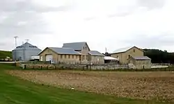 Farm No. 1, Iowa Men's Reformatory, also known as the West Farm, is located west of Anamosa, Iowa, United States. It was listed as a historic district on the National Register of Historic Places in 1992.[1] At the time of its nomination the district consisted of 10 resources, including seven contributing buildings, and three non-contributing buildings.[2] When the property for the reformatory was acquired by the State of Iowa in 1872 it included 61 acres (25 ha) of farmland. Farming at the facility did not become a significant enterprise here until the turn of the 20th century. Before then the prisoners maintained a vegetable garden within the walls, and they raised sixty-five hogs. The state bought 80.31 acres (32.50 ha) of land in 1904 for farming operations and built a hog house and a stone barn, both are no longer extant. Minimum security prisoners did the farm work. The historic buildings were built between 1912 and 1939. They are all stone structures built in a simplified Romanesque Revival style. The influence of the style is found in the "heavy massing, texture of the stone, and the window, door, and corner treatments."[2] The buildings were built for the following uses: South barn (1912, 1926 addition), barn granary (1915), root cellar (1919), North barn (c. 1919), slaughter house (1921-1922), processing plant (1922), and the seed house, dining hall, cold frame (1939).