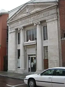 Farmers and Merchants Bank, also known as Geneva Savings Bank, is a historic bank building located at Geneva in Ontario County, New York. It was constructed in 1914–1915 and is a 2+1⁄2-story, three-bay brick building with a cast stone facade. The facade embodies a full range of Neoclassical features derived from ancient Greek architecture that were meant to convey a sense of integrity, durability, and reliability to the venerable financial institution of public banking.[2]