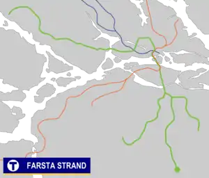 Farsta strand metro station is on the green line of the Stockholm metro, located in Farsta strand, Söderort. It is the end station for line 18. The station was opened on 29 August 1971 as the southern terminus of the extension from Farsta.[2] The distance to Slussen is 10.4 km (6 mi).