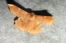 The wingspan of the male is 38 mm.[4] Forewings with outer and inner margins excised towards outer angle. Hindwings with the costa and apex more or less truncate and excised. Cilia non-crenulate. Male has deep reddish-brown body with an olive shade and slightly suffused with purplish grey. Wings with dark striae. Forewings with grey costa. There is an oblique antemedial line angled below the costa and a yellow spot at end of the cell often with a hyaline center. Traces of a postmedial line can be seen. A curved and waved purplish-grey submarginal line present angled below costa, and on the hindwings becoming postmedial. Ventral side of forewings with yellow basal half, brown outer area, bright reddish brown inside the postmedial line. This postmedial line is prominent, angled and purple, or with a quadrate sinus below costa and often waved towards inner margin. Hindwings yellow, suffused and striated with rufous outer area. There is an indistinct postmedial and curved crenulate submarginal line present. Wingspan of the female is 44 mm. Female much similar to male, but differs in much red in color.[5]