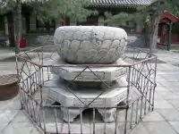 On both sides of the Gate of Temple stand the Bell Tower and the Drum Tower respectively. The Main Hall, which is magnificent and sacred, houses Statues of Flower Adornment School's three saints: Vairocana, Manjusri, and Samantabhadra. The Hall of Great Compassion houses statues, carved stones, and artistic masterpieces. Among these statues there stand some of the most valuable statues in ancient China - Pottery Statue of Sitting Buddha of the Eastern Han dynasty (25-220), Pottery-bottle Statue of Buddha of the Eastern Wu dynasty (229-280), Stone Statue of Buddha of the Tang dynasty (618-907), and Steel-cast Statue of Guanyin.