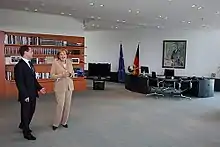 - 7th floor: Office of the Federal Chancellor with windows towards the Reichstag building and Brandenburg Gate, and Office of the chancellery chief.