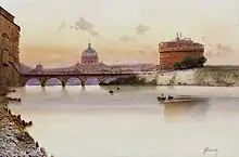 Vedute of Tiber and Castel Sant'Angelo (watercolor).