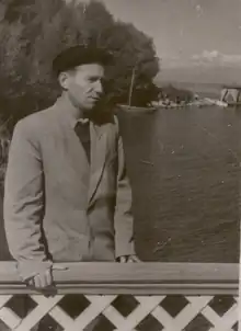 One of the oldest Russian writers of Kyrgyzstan,[4] whose works have become an integral part of the literary process in the republic,[5] front-line soldier Fedor Ivanovich Samokhin was born on the farm of Verkhne-Sadovsky of the Don Host Oblast of the Russian Soviet Republic in the family of a poor peasant. In 1940, he graduated from the Nizhne-Chirskaya secondary school. In 1944, he studied at the courses for newspaper workers in Moscow;[6] in the same year he joined the ranks of the CPSU(b).[7]