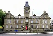 In 1843, High Felling, Low Felling and Felling Shore were independent villages in the Chapelry of Heworth, along with High and Nether Heworth, Bill Quay, Windy Nook, Carr Hill, Wardley and Follingsby.[61] In 1894 the first Felling Urban District Council sat at Felling. The council "was the offspring of that ancient township and inherited its customs, its local government, its land and its people", so that all of those villages combined to become the town of Felling.[62] In 1902, the council moved to new administrative buildings at Sunderland Road, known thereafter as Felling Town Hall.[63] The urban council administered the Felling District until its final meeting, concluded with a rendition of the Hokey cokey, on 28 March 1974, when Felling was incorporated into the Metropolitan Borough of Gateshead by the Local Government Act 1972.[64][65]