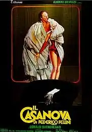 Fellini's Casanova (Italian: Il Casanova di Federico Fellini, lit. 'The Casanova by Federico Fellini') is a 1976 Italian erotic historical surreal film directed by Federico Fellini from a screenplay by himself and Bernardino Zapponi, adapted from the autobiography of 18th-century Venetian adventurer and writer Giacomo Casanova, portrayed by Donald Sutherland.[1] The film depicts Casanova's life as a journey into sexual abandonment, and his relationship with the “love of his life” Henriette (played by Tina Aumont). The narrative presents Casanova's adventures in a detached, methodical fashion, as the respect for which he yearns is constantly undermined by his more basic urges.[2]