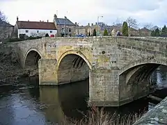 There are two bridges crossing the River Coquet. The older stone bridge dates to around the 15th century,[3] while the newer concrete bridge was built in 1926. The older bridge is closed to traffic, and is often used for village events including wassailing at Christmas.