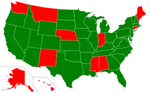 In the United States, FGM was criminalised federally in 1996 and in 17/50 states during 1994–2006.[8] However, the federal law criminalising FGM was declared unconstitutional by a Michigan court in November 2018, mostly because the judge found that the federal government did not have the authority to legislate on the issue, and that the U.S. states should.[12] At the time of the ruling, 27 states had specifically criminalised FGM,[12] and the court case stimulated the other states to do so as well, both during[12] and after the trial.[13] By March 2020, the practice was illegal in 35/50 states;[3] by May 2020, FGM was banned in 38/50 U.S. states.[14] On 5 January 2021, the STOP FGM Act of 2020 was enacted, which considers FGM 'a form of child abuse, gender discrimination, and violence', empowering federal authorities to prosecute people who 'carry out or conspire to carry out FGM' and increasing the maximum prison sentence from 5 to 10 years. This replaced the 1996 law that was declared unconstitutional in 2018. At the time of signing, 11 out of the 50 U.S. states still had no state ban on FGM.[15] By August 2023, 41 states had specific laws against FGM.[16]