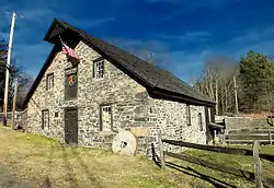 The Fenner–Snyder Mill, also known as Brinker's Mill and the Old Mill, is a historic grist mill located on the McMicheal's creek in the village of Sciota in Hamilton Township, Monroe County, Pennsylvania. The mill was built in 1730, and is a large 2+12-story fieldstone and sided banked building. It has a tin roof added about 1860. It was in continuous milling operation until mid-April 1954.[2] In 1974, the mill was donated to Hamilton Township with the understanding that it would be used for “historical, cultural, and governmental purposes.”[3]