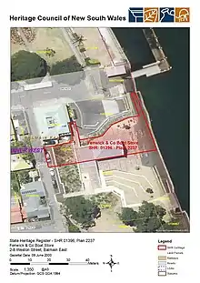 - 1 2 3 4 5 6 7 8 9 10 11 12 13 14 15 16 17 18 19 20 21 22 23 24 25 26 27 "Fenwick & Co Boat Store". New South Wales State Heritage Register. Department of Planning & Environment. H01396. Retrieved 2 June 2018.