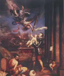 Painting by Titian of Ferdinand's father offering him to victory