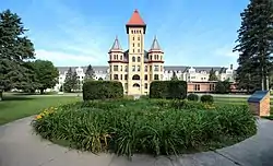 This plan proceeded but later encountered roadblocks over financing. In October 2014 the developer asked for an investment of $700,000 from the city toward the project. In November 2014, after the city and the developer had appeared to reach an impasse, a citizens group launched a fundraising drive to raise the $700,000 needed to proceed with the development. The group had until December 31 to reach its goal.[11] On January 18, 2018, however, city officials unanimously voted to seek state funding for demolition of the campus, citing doubt that sufficient funds could be secured for reuse of the facility. Fergus Falls officials requested $8.9 million of the state's bonding bill to preserve the vacant tower building, which would be the only structure of the site left standing.[12] The state granted $3.5 million for the project in May 2018, and demolition began with the mid-century administration building, constructed in the 1950s. The removal of this building is outlined in the first phase of a two-step plan for demolition, and Mayor Ben Schierer has indicated that the city may still be open to practical suggestions for renovation of the original Kirkbride building.[13]