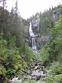Fettjeåfallet is a waterfall located just west of Klövsjö in Fettjeån (Fättjeån), Jämtland, Sweden. It has a height of about 60 metres (200 ft).[1] It is a popular destination of hikers in the summer and for ice climbing in the winter.
