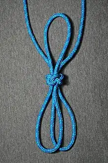 Many methods have been devised to tie the fiador knot,[7] including fixtures used to hold the parts in shape while tying.[4][8] More recent sources have shown a simpler method of forming the fiador knot using a flat precursor knot.[9][10][11]