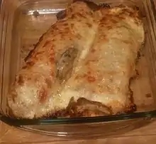 Ficelle picarde ("Picardy string") is a dish of Picardy, northern France, consisting of a rolled savoury crêpe stuffed with a slice of ham and a creamed shallots duxelles, broiled in cream under a layer of cheese.[1]