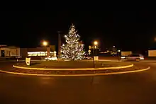 The primary cross street within the district is Federal Street, which intersects Fifth Street at its 700-800 block transition. Like all streets crossing Fifth (except Park Avenue), Federal Street intersects at a right angle, and runs in a southeast-to-northwest direction. On its southeastern end, Federal Street terminates in its 1100 block due to a steep cliff that overlooks Twelfth Street. On its northwestern end, Federal Street transitions into Hollins Mill Road, a winding route that crosses Blackwater Creek and terminates at its intersection with Bedford Avenue. The intersection of Fifth and Federal is marked by a single-lane, four-way roundabout and adjoining pedestrian plazas, which were completed in 2010.