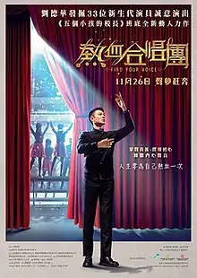 Find Your Voice is a 2020 Hong Kong drama film written and directed by Adrian Kwan, produced by and starring Andy Lau as a former internationally renowned conductor who resides in the United States, returns to Hong Kong lead a pessimistic group of choir students.[2] The film was theatrically released on 26 November 2020.[3]