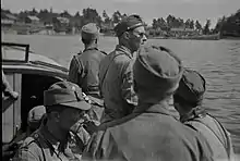Following the capture of most of the islands in the bay, on 7 July the Soviets made multiple attempted battalion-sized landings on the Finnish side of the bay, but all attempts were repulsed. The attempts were renewed on 9 July, when forces from two Soviet divisions attempted further landings. These attempts, however, hit the sector of the German 122nd Infantry Division that had arrived on the bay on 8 July, and were repulsed completely.[31] Following the failure of the 9 July landings, the Soviet 59th Army was ordered to halt the operation. As a result, the sector became largely passive to the end of the war, and the attempted Soviet strategic breakthrough had failed.[32]