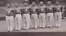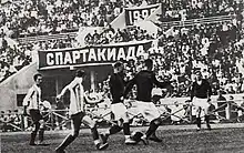 The establishment of TUL led into a dispersion in the Finnish sports as there was no cooperation between TUL and SVUL. Both associations created their own practise and competition systems, the Finnish championship titles were decided by SVUL athletes as TUL had own championships. Also the Finnish national teams were composed of SVUL athletes only.[3] In 1920, TUL was a founding member of the Socialist Workers' Sport International and later had also relations with the Red Sport International. Instead of the ″bourgeoise″ Olympic Games, the TUL athletes participated the Workers' Olympiads and the Spartakiads.[5] In 1921, TUL sent a team to the Workers' Sports Festival in Prague,[4] and in September 1922, the Finnish Workers' Sports Federation football team toured Soviet Russia. This was also the first international contact for Soviet sports after the 1917 October Revolution.[5]