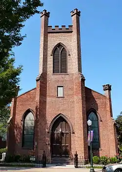 First Baptist Church is a historic Southern Baptist church located at Middle Street and Church Alley in New Bern, Craven County, North Carolina. It was built in 1848, and is a rectangular brick church building in the Gothic Revival style. It features a two-stage, turreted entrance tower.[2]