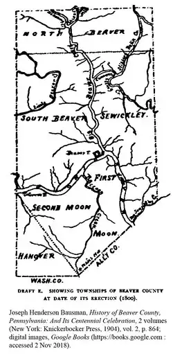 - 1 2 3 Joseph Henderson Bausman (1904). "History of Beaver County, Pennsylvania: And Its Centennial Celebration". New York: Knickerbocker Press. Retrieved 2 Nov 2018.