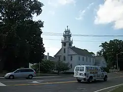 ![]() The church as seen from across NY 25A at the Smithtown Main Library | |