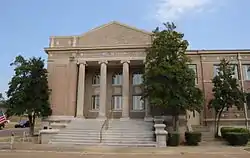 The First United Methodist Church is a historic church at 101 S. Izard Street in Forrest City, Arkansas. It is a two-story brick structure, designed by Memphis architect John Gaisford and built in 1917 as the second church for its congregation. One of Gaisford's last designs, it is Classical Revival in style, with a Greek-style temple front with full-height Ionic columns supporting a triangular pediment, with limestone trim accenting the brickwork.[2]