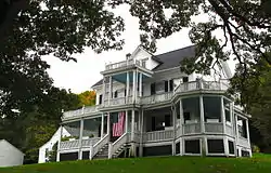 The Fisherville Historic District is a historic district encompassing one of the four 19th century industrial villages of Grafton, Massachusetts. The area's first industrial activity was in 1831–2, when Peter Farnum (who had a mill at Farnumsville) and business partners built a brick mill there. A densely packed residential area grew around the mill complex, which achieved its present configuration c. 1909. The largest period of growth in terms of residential housing was in the last two decades of the 19th century, when a significant number of Italianate and Queen Anne worker houses were built.[2]