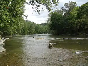 The Fishing Creek Confederacy was an alleged military uprising in northern Columbia County, Pennsylvania and southern Sullivan County, Pennsylvania during the American Civil War. Residents of Columbia County strongly opposed military drafts that were being conducted there, leading to widespread desertion and draft evasion. In a Columbia County draft in July 1863, 618 people were drafted. Of these, approximately 75% evaded the draft.[2] On July 30, 1864, several people rode into northern Columbia County from Luzerne County to search for deserters, and one of the riders was shot. By the summer of 1864, rumors had begun to circulate that these deserters and draft evaders, as well as Confederate sympathizers, had built a fort with cannons on North Mountain, not far from the headwaters of Fishing Creek. This fort was supposedly manned by 500 people.[3] Upon hearing these rumors, 1000 soldiers gathered near Bloomsburg, in Columbia County.