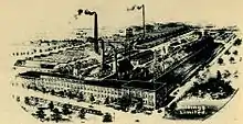 In 1873, the Oshawa Stove Works was founded as a joint stock company with a $5,000 bonus from the town of Oshawa. The company employed about 30 men. In 1880, new management under J.S. Larke, who accepted a government job that required travel to Australia and left the business to his business partner J. Bales in 1894.[2] The Oshawa Stove Company facilities were housed in a three-story brick building that included molding shops, nickel plating facilities and pattern making facilities as stoves were made of cast iron in the 1800s.[3]