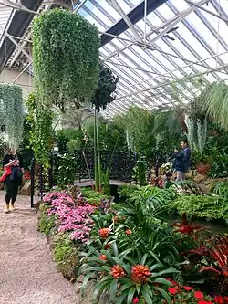 During the 1880s and 1890s many of the blue gums were removed to create more room for existing trees, as well as sweeping lawns and ornamental flowerbeds. Sub Tropical planting became a feature of the Gardens with the creation of new planting in areas like the Mound and the Grey Street Walk. Further major changes occurred in the 1930s and 1940s with the establishment of the Conservatory and the arrival of Cooks' Cottage in the Gardens. In 2014 an area previously used for depot activities was reclaimed as garden space and features a major stormwater harvesting system, a café and visitor centre which provides tourism information about Melbourne as well as specific information and services for Cooks' Cottage and Fitzroy Gardens.[2]