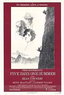 Five Days One Summer is a 1982 American romantic drama film directed and produced by Fred Zinnemann from a screenplay by Michael Austin, based on the 1929 short story Maiden, Maiden by Kay Boyle.[2] Set primarily in the Alps, the story focuses on Douglas Meredith (Sean Connery) and his lover Kate (Betsy Brantley) as they embark on a mountain climbing trip, which unravels their relationship due to Kate's feelings for their mountain guide (Lambert Wilson) as well as a dark secret that looms over the couple.