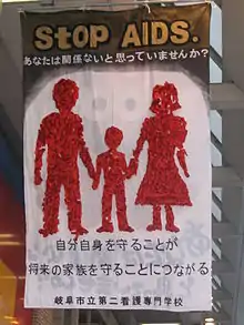 In 1996, the city of Gifu completed a covered shopping arcade 6 m (20 ft) and 2 km (1 mi) over its downtown shopping area.[2] To commemorate the event, artwork was hung from flags measuring 3 m (9.8 ft) in height and 1.8 m (5.9 ft) in width.[4] The city decided to continue the event in 1997 with the First Annual Flag Art Exhibition in Gifu. In 2006, the 11th annual exhibition received the grand prize at the Furusato Event Competition.[1][2]