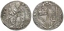 16th century coin depicting Saint Petronius and the coat of arms of the city