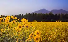 Flagstaff's hardiness zone is mostly 6a, with some areas 5b, meaning plants withstand temperatures down to −15 °F (−26 °C).[74] It is in the Transition life zone;[75] the concept of life zones was first observed in the Flagstaff area.[76] Wind in Flagstaff typically blows southwesterly throughout the year, based on topographical features.[56] The city's climate data is observed from Flagstaff Pulliam Airport.[77]
