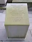 The soil held in the grass bed was collected by children from 70 war cemeteries and battlefields in Flanders in 'ceremonies of remembrance'.[1][2] Prince Philip, Duke of Edinburgh and Prince Laurent of Belgium were present for the ceremony in Ypres to hand over the sandbags of soil for the memorial on Armistice Day in 2013.[1] The soil was carried by Belgian and British schoolchildren and soldiers from the British Household Division, who loaded the soil onto a gun carriage of the King's Troop.[2] From Belgium the soil was transported by sea by the Belgian Navy's frigate Louisa Marie (F931) and was given to the British Army on 29 November 2013 while alongside HMS Belfast. The sandbags were then transported through London on the original gun carriage to the memorial garden.[2]